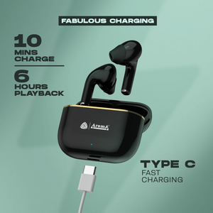 Introducing the Aroma NB140 Fabulous, a state-of-the-art True Wireless Stereo (TWS) product designed to revolutionize your audio experience. With an impressive 24 hours of playtime, you can enjoy uninterrupted music, podcasts, and calls throughout your day. Its IPX4 water resistance rating ensures durability in various conditions, making it perfect for workouts or outdoor adventures. Thanks to quick charging capabilities, you can swiftly recharge your earbuds for extended use. Immerse yourself in rich, resonant sound with deep bass quality and 10mm audio drivers, delivering an unparalleled auditory sensation. Featuring Bluetooth V5.0 technology, it offers seamless connectivity with your devices, while dual pairing functionality allows connection with multiple devices simultaneously. Moreover, the built-in voice assistant enables hands-free control, adding convenience to your daily activities. Elevate your audio experience with the Aroma NB140 Fabulous.